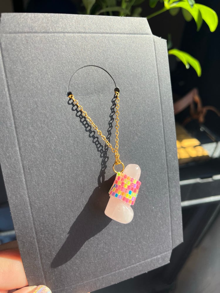 Rose Quartz Neon Peen Necklace